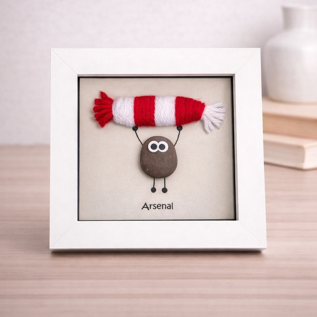 This unique handmade Arsenal pebble art frame is the perfect keepsake for any fan of the club. Perfect for birthdays, Father’s Day, Christmas, or just because.